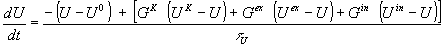 and an external input conductance , given by a stochastic spike train with probability of spike event