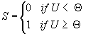 Equation (3) is a conventional threshold rule. Unlike in the MacGregor model neuron [ref. MacGregor], we used a fixed threshold value