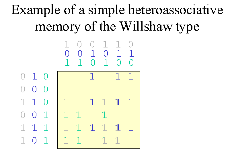 Hoewel Willshaw een heel simpel model is, heeft het al een heel aantal van de eigenschappen die netwerkmodellen nuttig maken. Zo kan het vanuit het partiële inputpatroon het gehele outputpatroon ophalen ("pattern completion"; zie fig. 3). Ook is the goed bestand tegen kleine leasies ("graceful degradation").